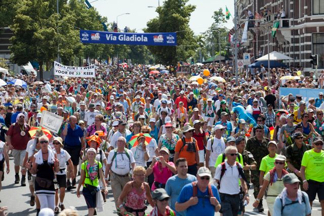 Elke Nijmegenaar wil hem ooit lopen: de Nijmeegse Vierdaagse. Maar voor- en nadat het zover is zijn er natuurlijk de Vierdaagsefeesten. Inwoners van de Waalstad bewijzen zich als echte feestnummers door maar liefst 7 dagen lang te fuiven. Essentieel onderdeel van deze week is het aanmoedigen van de wandelaars. ’s Nachts worden de vertrekkende wandelaars toegejuicht en 's middags worden ze met high fives en toeters onthaald. Sterk staaltje teamspirit!