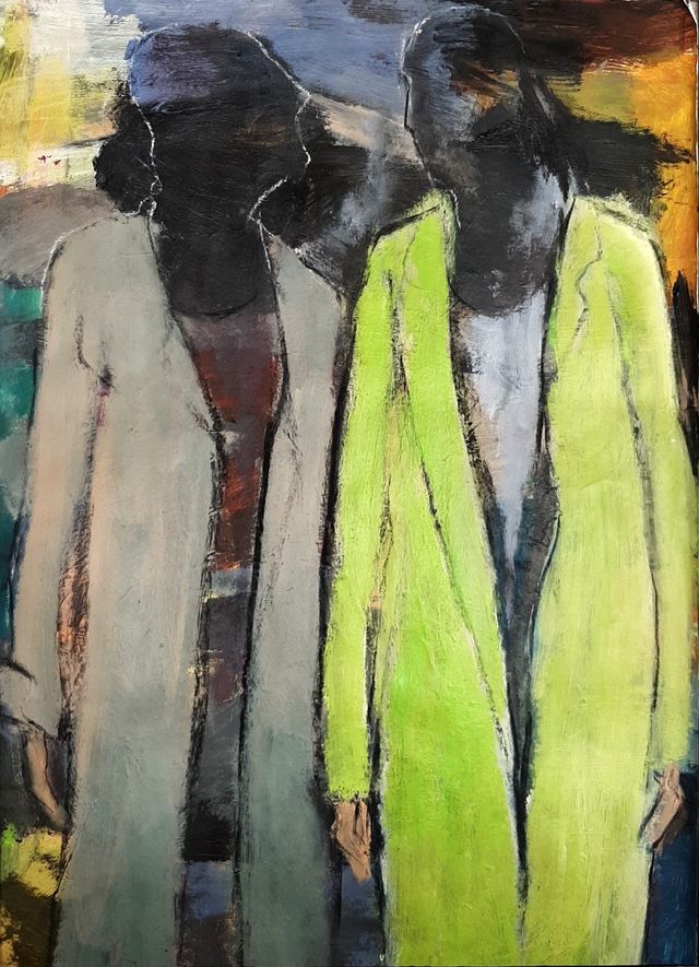Rens Slippens werkt met acrylverf op een snelle en directe wijze, zo spontaan mogelijk.