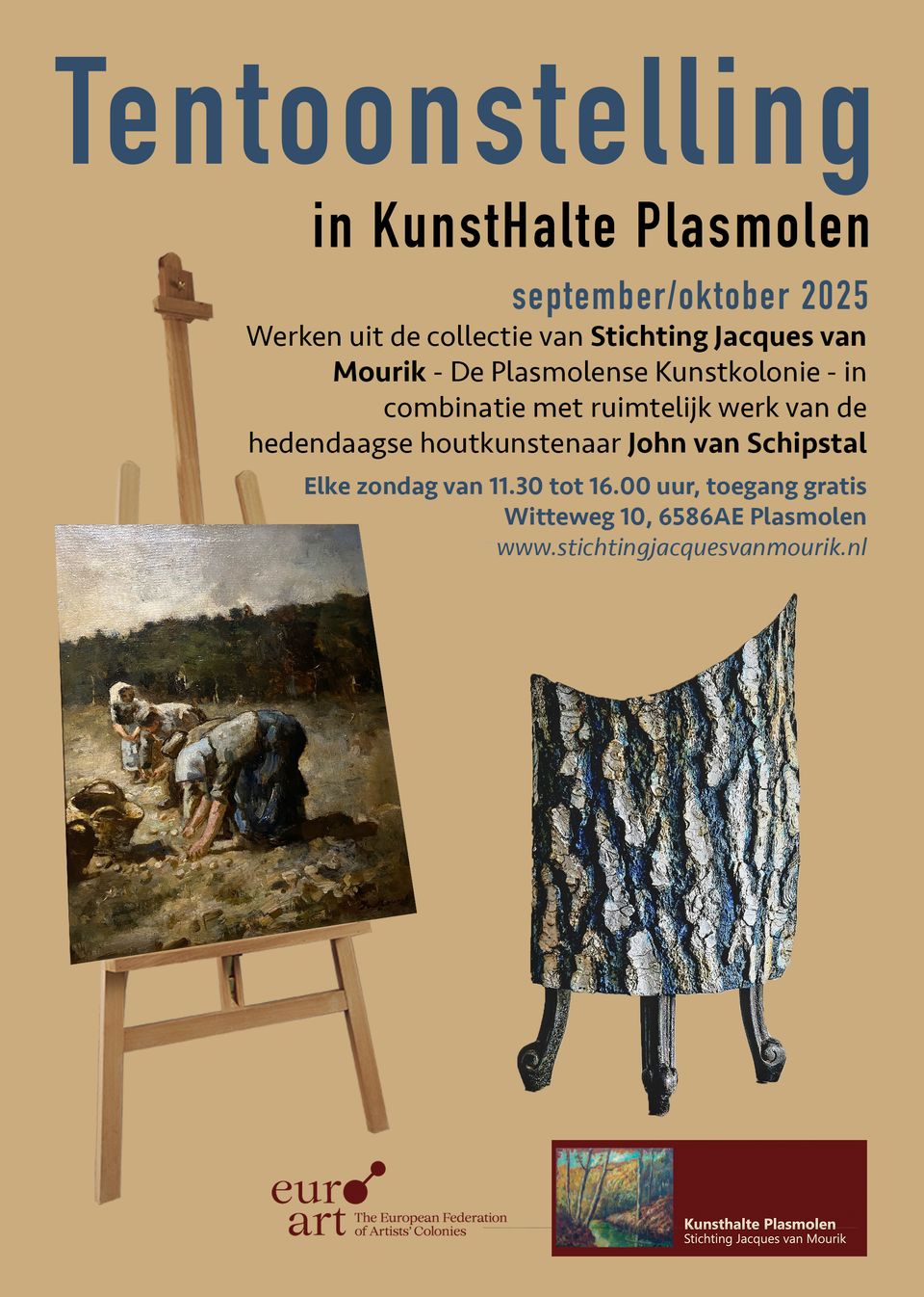 In september en oktober 2025 zullen in Kunsthalte Plasmolen werken te zien zijn uit de collectie van Stichting Jacques van Mourik – De Plasmolense Kunstkolonie- in combinatie met ruimtelijk werk van de hedendaagse houtkunstenaar John van Schipstal uit Cuijk.
