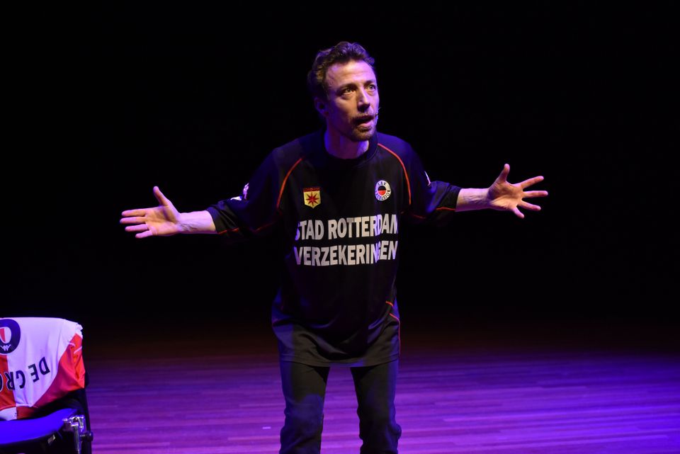 De voorstelling is gebaseerd op zijn eigen ervaringen als voormalig profvoetballer.