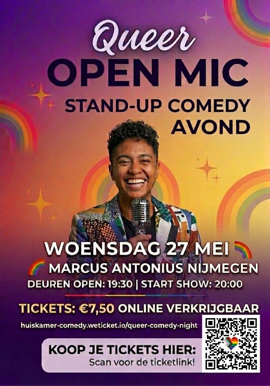 Op woensdag 27 mei organiseert huiskamer comedy samen met Marcus Antonius een Queer comedy avond. Meerdere comedians en een MC gaan er voor zorgen dat het samen een ontzettend leuke avond gaat worden.