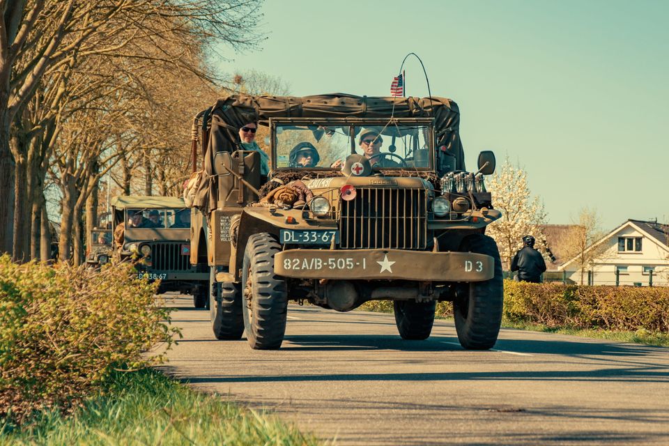 Een indrukwekkende rondrit van circa 43 kilometer voert langs historische locaties en monumenten in de Betuwe. Authentieke militaire voertuigen rijden door het landschap dat in de oorlog zwaar werd bevochten.