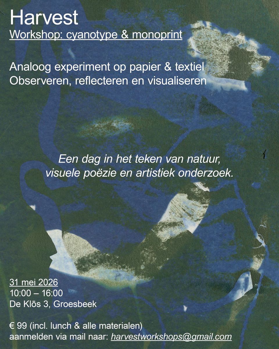 Aanmelden via mail naar: harvestworkshops@gmail.com