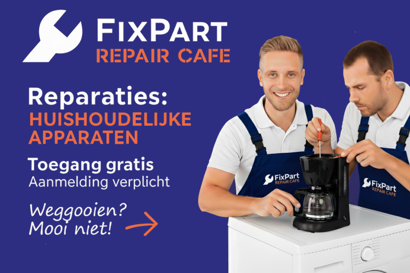 Heeft u een kapot apparaat? Kom langs bij het FixPart Reparatiecafé en repareer het samen met onze vrijwilligers. We helpen met kleine huishoudelijke apparaten en elektronica, en laten zien hoe u zelf een reparatie kunt uitvoeren. Zo bespaart u geld en geven we apparaten samen een tweede leven.